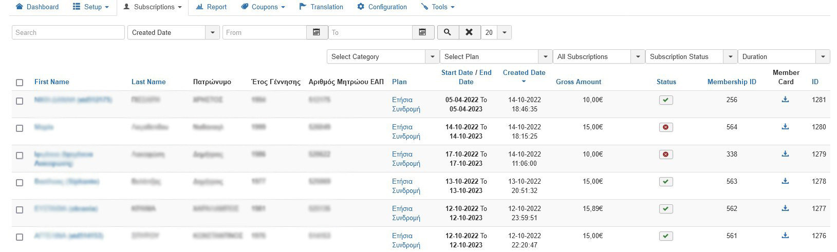 Διαχείριση συνδρομών (από την πλευρά του μέλους)